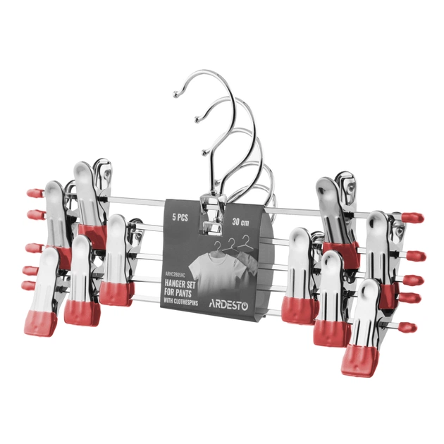Плічка Ardesto Металеві З прищіпками для штанів Червоний 30 см 5 шт. (ARHC2805RC)