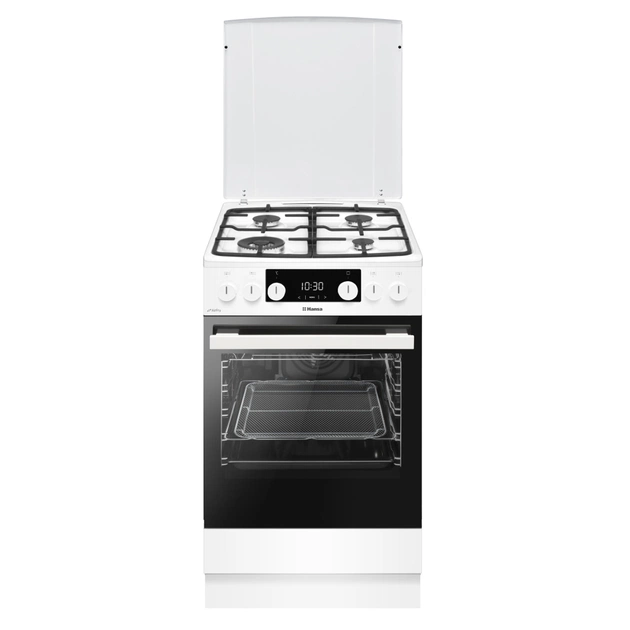 Hansa FCMW58329 – це поєднання елегантного дизайну та розширених можливостей для зручного приготування. Газова варильна панель оснащена 4 конфорками, зокрема потужною WOK-конфоркою, автоматичним запалюванням і чавунними ґратами. Простора 65-літрова електрична духовка має 8 програм, конвекцію та електричний гриль. Каталітична система очищення спрощує догляд, а спеціальне деко AirFry дозволяє готувати без олії.