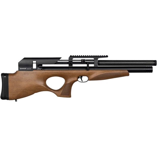 Diana SKYHAWK – пневматична гвинтівка з попереднім накачуванням в компонуванні бул-пап, що має достатньо високу потужність. Має ретельно продуману конструкцію, що відрізняється гарною збалансованістю і легкою вагою. Дулова енергія – 26 Джоулів. Максимальний тиск резервуара об'ємом 265 мл – до 250 бар. Інтегрований саундмодератор надає гвинтівці більш привабливий вигляд за рахунок більшої товщини ствола і значно знижує звук пострілу. Ергономічна ложа виконана з дерева (виробник Minelli, Італія). В залежності від моделі вона може бути з бука, горіха або ламінованої деревини. Регульований потиличник виготовлений з міцної гуми. Відкриті прицільні пристосування відсутні, тому передбачена планка для встановлення оптики. Гвинтівка оснащена редуктором.