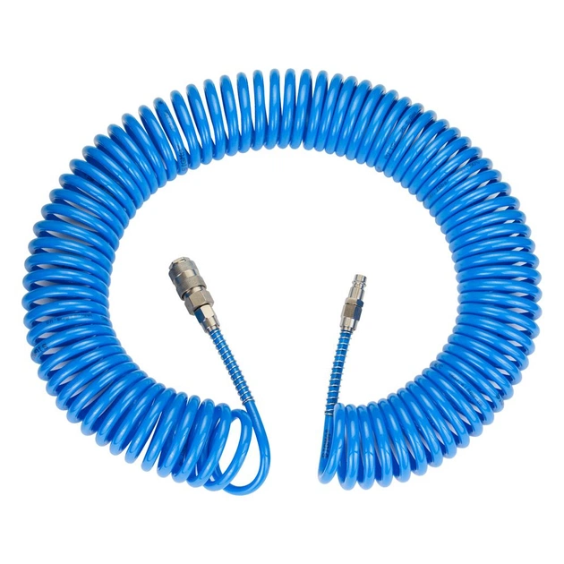 Шланг спіральний поліуретановий (PU) використовується для передачі повітря в пневматичних системах стандартного тиску. Має хорошу стійкість до механічних впливів (перегини, здавлювання, скручування) і швидко відновлює свою первинну форму після зняття механічного впливу. Шланг не схильний до гідролізу і має хорошу стійкість до впливу озону і мікроорганізмів.
