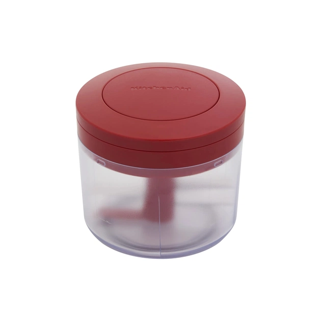 Легко подрібнюйте фрукти, овочі та горіхи для салатів, сальси, соусів і заправок за допомогою ручного подрібнювача KitchenAid. Просто потягніть за шнур, щоб розкрутити леза і отримати ідеально подрібнені інгредієнти за лічені секунди. Гострі леза з нержавіючої сталі легко нарізають продукти для швидкого приготування, а нековзна основа забезпечує стійкість подрібнювача на стільниці під час роботи. Леза контейнера та основа знімної кришки можна мити в посудомийній машині; кришку на шнурі можна мити лише вручну. Компактна, легка конструкція подрібнювача дозволяє зручно зберігати його.