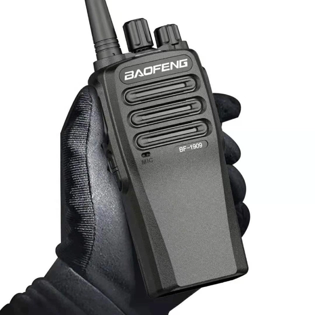Рация Baofeng BF-1909 это ещё одна новинка на рынке Украины от известного китайского производителя. Как и все профессиональные рации, она сделана в прочном монолитном корпусе с минимальным количеством органов управления. Все нужные настройки программируются нашим специалистом с ПК. Пользователям для работы нужно только установить одинаковый рабочий канал и громкость.
