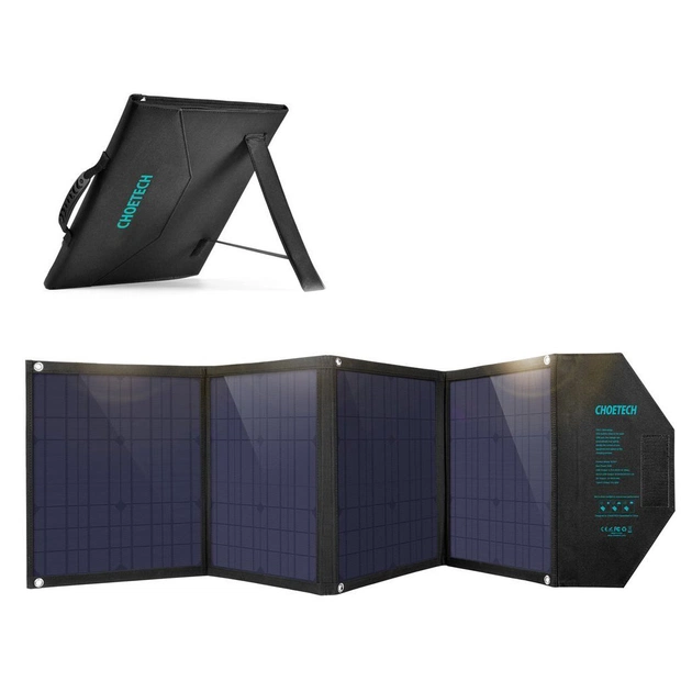 Сонячна панель для УМБ Choetech 80W ідеально підходить для активного відпочинку, наприклад для кемпінгу, походів, пікніків. Розміщуйте її на своєму авто чи просто розкладайте на відкритій поверхні. Зарядний пристрій оснащений чотирма підставками – встановлюйте панелі під кутом та досягайте максимальної енергоефективності.