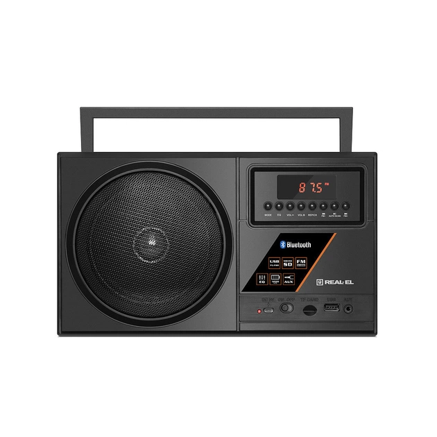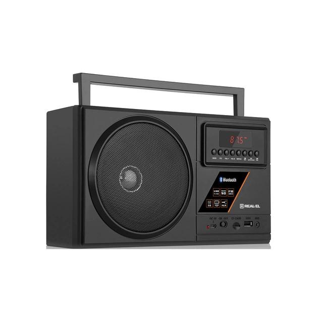 Портативний радіоприймач REAL-EL X-700 - відмінний попутник для поїздок, подорожей та прогулянок, а також чудовий компаньйон вдома і на роботі. Крім того, що Ви можете взяти з собою улюблені FM-радіостанції куди завгодно, до моделі приймача додано безліч сучасних опцій: бездротова передача сигналу через Bluetooth, відтворення з USB-flash та microSD card носіїв, AUX вхід. Вбудований еквалайзер дозволить налаштувати високі та низькі частоти, виходячи з ваших уподобань.