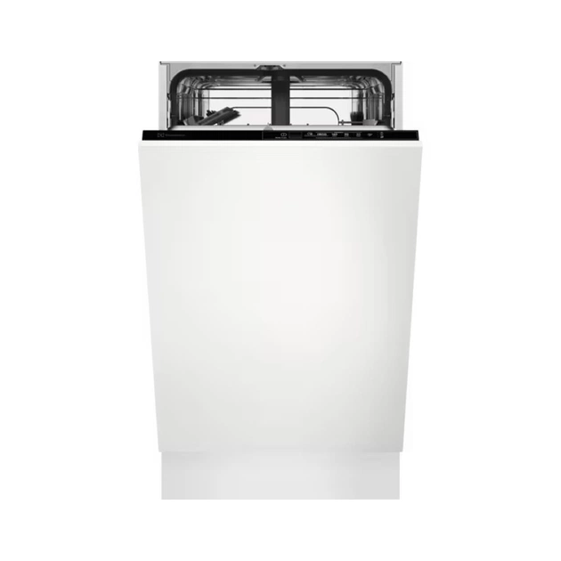 Вбудована посудомийна машина Electrolux EEA71210L — вузька модель на 9 комплектів із 5 програмами, серед яких економічна, щоденна, експрес та попереднє ополіскування. Сенсорне керування та LED-індикація роблять користування максимально простим.