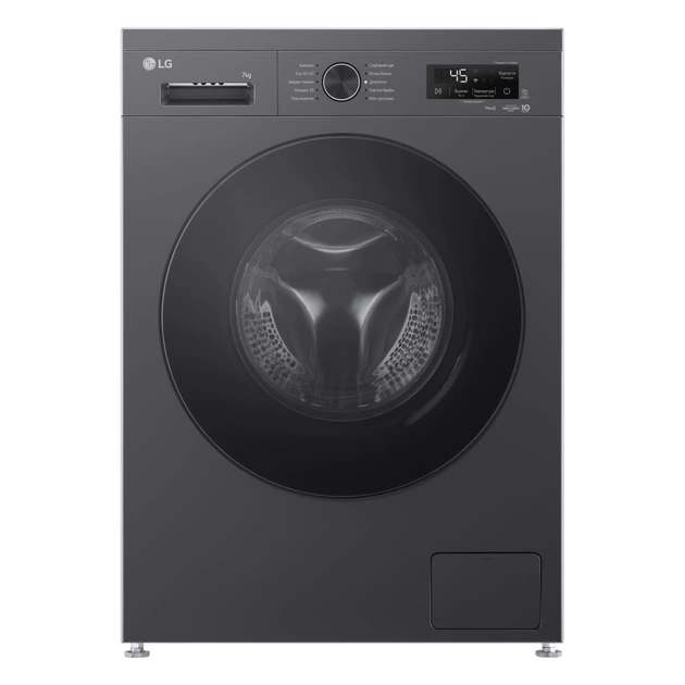 Пральна машина LG F2Y2HS5JE — це втілення сучасних технологій прання, що поєднує в собі естетичність, функціональність та максимальну зручність. Ця автономна модель з фронтальним завантаженням одразу привертає увагу елегантним дизайном та корпусом кольору антрацит. Чорний відтінок дверцят підкреслює стильність та надає вашій пральній зоні акуратний вигляд.