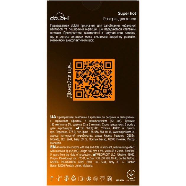 Стимулюючі презервативи Dolphi Super Hot створені для додаткового жіночого задоволення. Унікальний малюнок рельєфу текстури забезпечить задоволення та доповнить ефект спеціальної змазки, що розігріває.