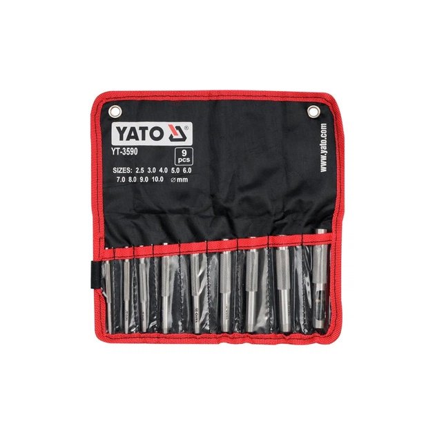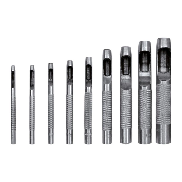 Набір YATO YT-3590 складається з 9-ти пробійників, які застосовуються для різання отворів в різних м'яких матеріалах, таких як шкіра, тонкий пластик, гума, текстиль, картон та інші. Даний набір буде затребуваний в сфері виробництва ручних виробів.
