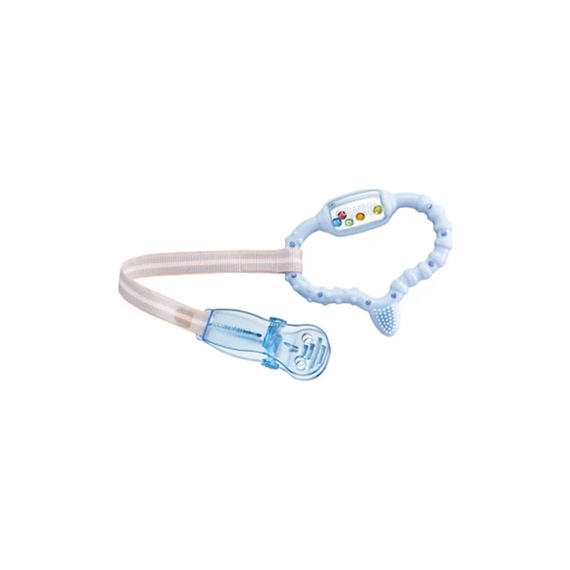 Стимулятор для прорізування тимчасових зубів CuraBaby-це добре продумане поєднання масажної зубної щітки, кільця для прорізування зубів і брязкальця. Вже з двомісячного віку воно стимулює розвиток різних почуттів малюка: зір, слух, дотик.