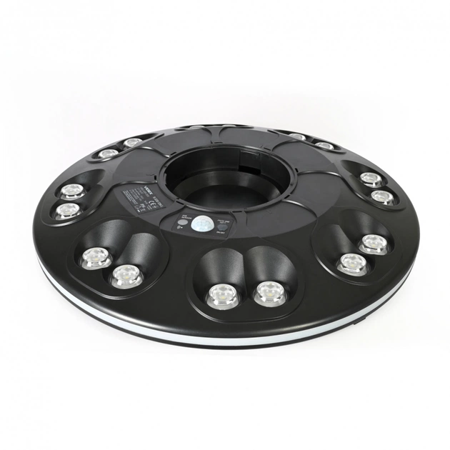 Имеет датчик движения и встроенную солнечную панель, которая обеспечивает автономную работу светильника. Мощность панели – 12W 5V. Емкость аккумулятора (LiFePO4) – 12Ah.