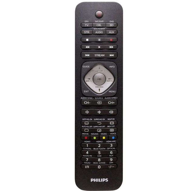 Сучасний і витончений пульт ДУ "6 в 1" дозволить вам з легкістю налаштувати всі пристрої у вашій вітальні. Чудово працює з саундбарамі і такими пристроями потокової передачі, як Apple TV і Roku.