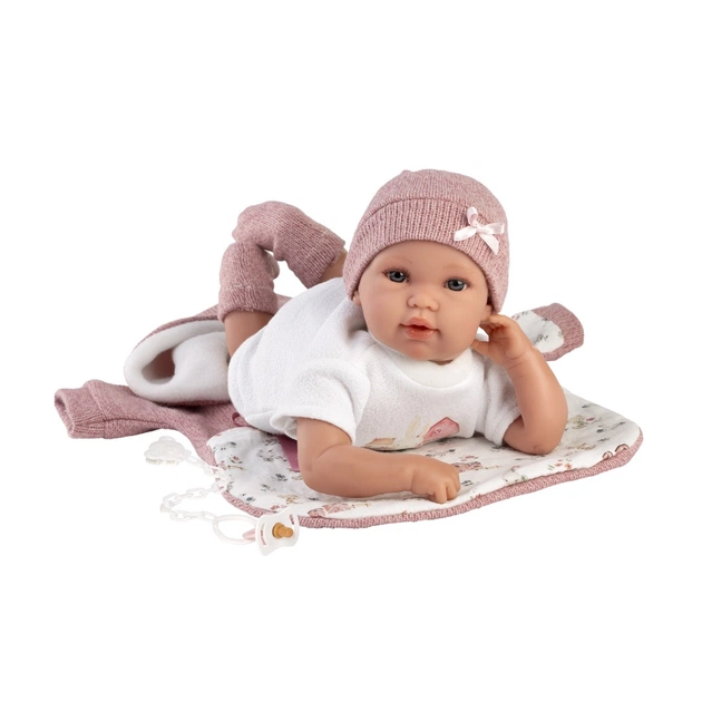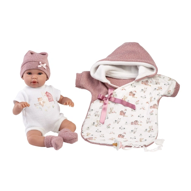 Виготовлений з високоякісних матеріалів, таких як вініл і тканина, цей пупс не лише виглядає реалістично, але й приємний на дотик. Його розміри становлять 360 мм, що робить його зручним для гри маленькими дитячими ручками. Пупс оснащений звуковими ефектами, що додають грі ще більше захоплення і роблять його справжнім другом для малюка.