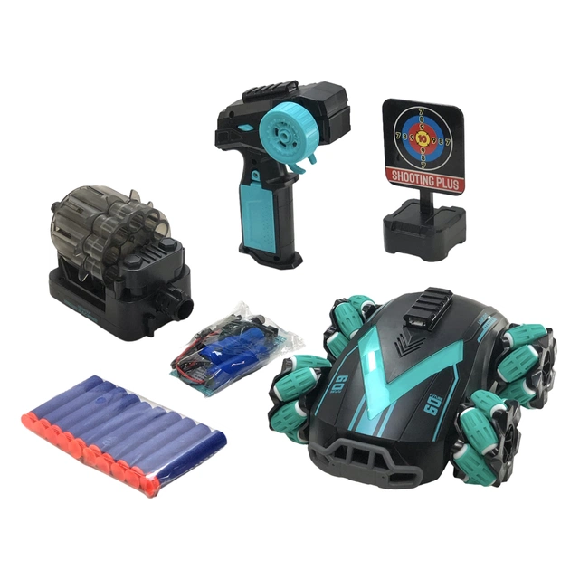Вежа, що стріляє, знімна, її можна встановити на пульт дистанційного керування й отримати бластер, а машинка може їздити й перевозити на собі мішень.