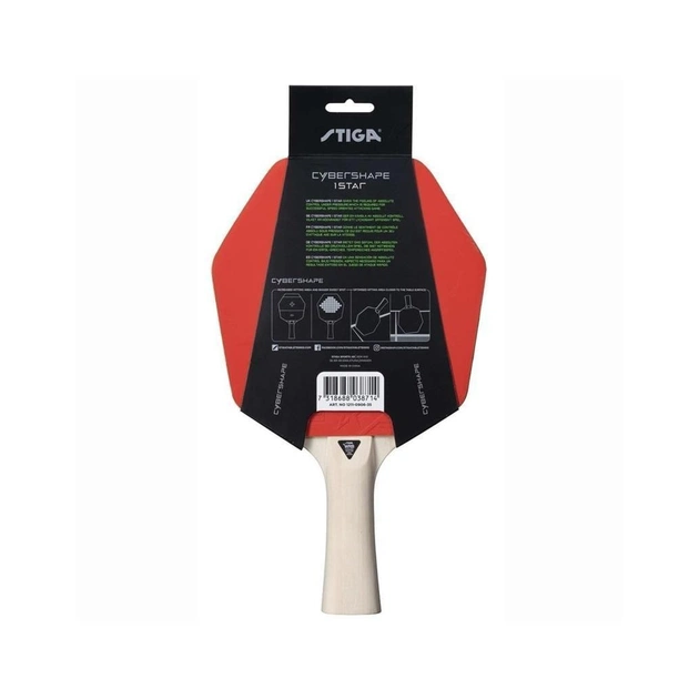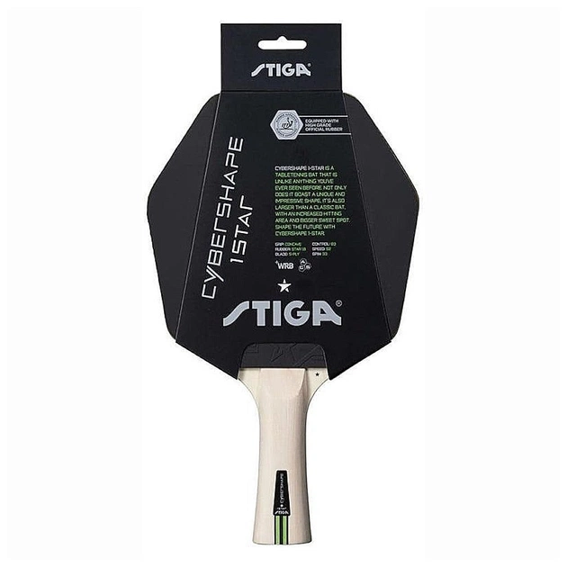 Візьміть під контроль свою гру в настільний теніс з STIGA Cybershape 1-star, інноваційною ракеткою для настільного тенісу, яка використовує революційну форму Cybershape, улюблену гравцем STIGA та фіналістом Кубка світу Трулсом Мерегардхом. Це легка ракетка з гарним контролем, для гри з друзями або для тих, хто хоче перейти до клубної гри та розвивати техніку. Унікальна форма бити пропонує не тільки більшу площу удару у верхній половині леза, що дозволяє легше зробити хороший удар.