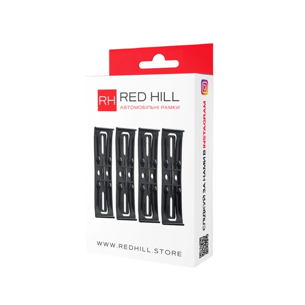 Рамка-невидимка для номерного знаку RedHill - це тонка та майже непомітна рамка навіть не виступає за межі номерного знаку. Вона виготовлена з якісного чорного пластику. Комплект розраховано для кріплення двух номерних знаків (передній та задній). Один номерний знак кріпиться на 2 кріплення та 4 саморіза.