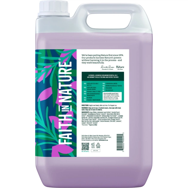 До складу цього веганського рідкого мила для рук входять ефірні олії герані, англійської лаванди та лавандину, які відомі своєю розслаблювальною та заспокійливою дією і дарують моменти умиротворіння під час кожного миття рук.
