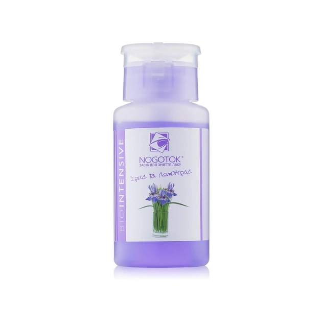 Рідина «Ірис і лемонграс» для зняття лаку - це можливість оцінити чудове поєднання делікатності та ефективності в одній формулі. Завдяки спеціальному складу засіб безацетонової лінії Nogotok Biointensive, збагачений оліями, не тільки легко і якісно видаляє будь-яке, навіть багатошарове декоративне покриття, але і забезпечує додатковий догляд за нігтями і кутикулою.