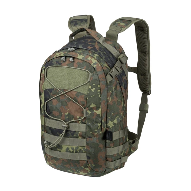 Рюкзак від польського бренду Helikon-Tex має простий дизайн у камуфляжному кольорі Flecktarn, універсальний як для повсякденного носіння, так і для військових. Модель зшита з нейлонової тканини Cordura 500D, яка не деформується під час високих навантажень, не рветься та не намокає за високої вологості повітря.