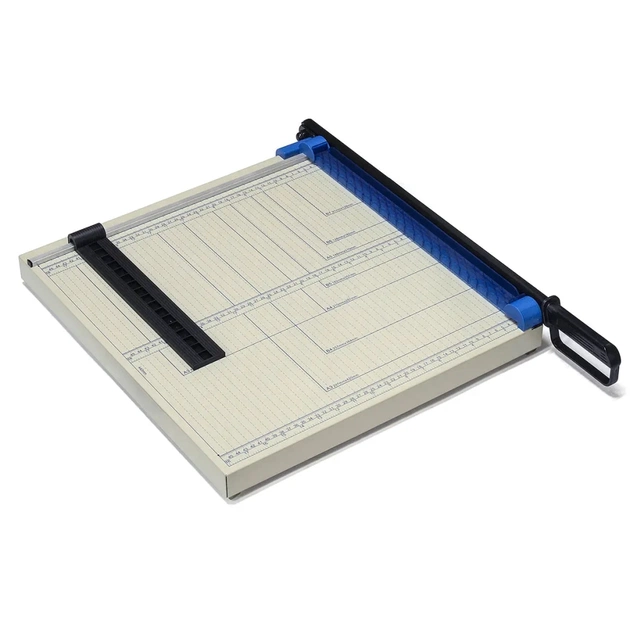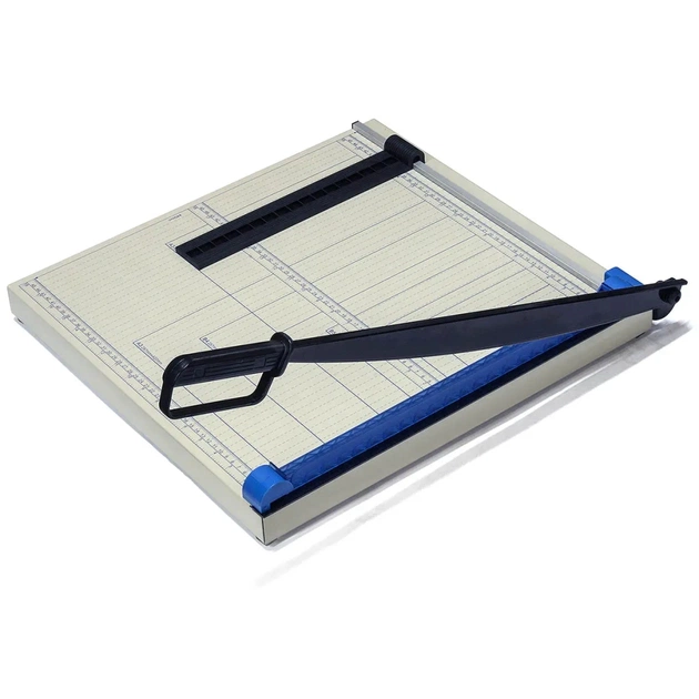 Різак шабельного типу для підрізування паперу. Призначений для офісної та домашньої поліграфії. Довжина різу - 440 мм. Товщина стопи - 1,2 мм. На столі нанесена розмітка стандартних форматів. Лінійка-позиционер для більш точного і зручного виставлення лінії різу. Металева основа різака, не деформується з часом, завжди тримає прямий і рівний різ.