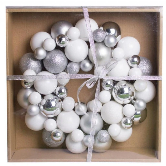 Різдвяний вінок Jumi Вінок з ялинкових пластикових кульок 34 см Білий з сріблясти (5900410379176)
