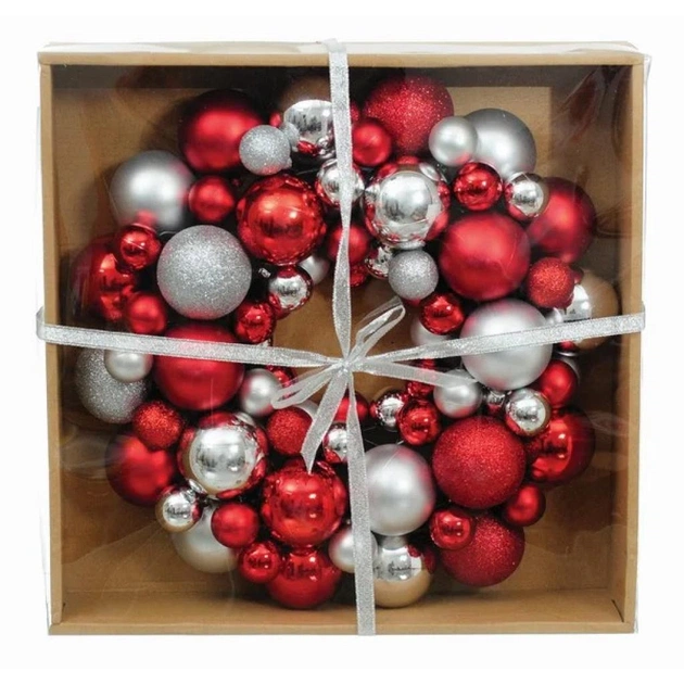 Різдвяний вінок Jumi з ялинкових пластикових кульок 34 см Червоно-сріблясти (5900410379183)