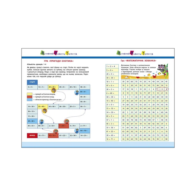 АРТ вирізалка - серія математичних зошитів-пазлів саме для тих, хто творчо підходить до навчання. Вправляйтеся в розв’язанні прикладів на додавання, збирайте яскраві математичні пазли та дізнавайтеся про пригоди єнотика Єні. Для цього потрібно лише розв’язати приклад, розрізати пазл на прямокутник, обрати прямокутник із правильною відповіддю, наклеїти пазл на відповідну клітинку. Вчиться додавати через гру та займайтеся залюбки.
