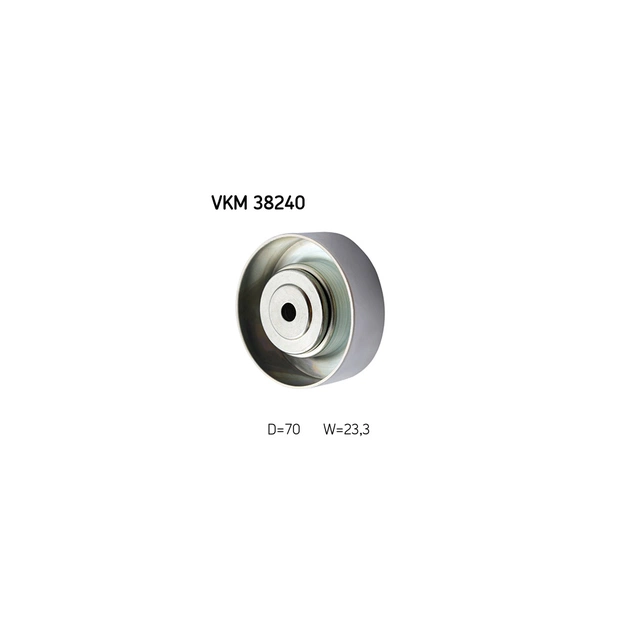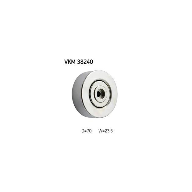 Обвідний ролик ременя поліклинового (приводного) SKF VKM 38240 дозволить зробити заміну зношеної/зламаної деталі, поліпшити ступінь натягу ременя, а також стабільність роботи приводу ГРМ та двигуна автомобіля. Всі деталі ролика виконані з матеріалів, високої якості, що дозволить забезпечити тривалий термін експлуатації деталі. Зовнішній діаметр становить 70 мм. Деталь має висоту 23 мм.