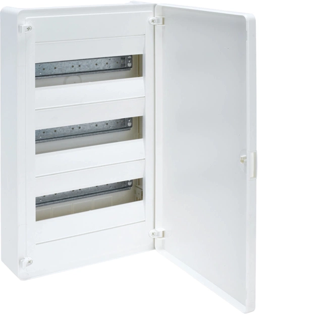 Розподільні щитки для прихованого встановлення Для апаратів до 63 А. З непрозорими дверцятами, для пристроїв до 70 мм. Встановлення дверцят праворуч або ліворуч, без демонтажу кришки; Відчинення дверцят на 180 градусів.
