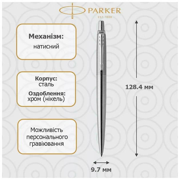 Parker JOTTER 17 SS CT GEL 16 162 - це високоякісна ручка, що поєднує елегантний стиль та надійну функціональність. Ручка виготовлена з нержавіючої сталі, що надає їй міцного та довговічного вигляду, який ідеально підходить для повсякденного використання.