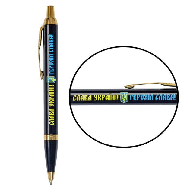 Ексклюзивна кулькова ручка Parker IM UKRAINE Black GT BP з кольоровим цифровим друком із Гербом України та національним гаслом. Класичний дизайн у популярному оздобленні Black GT з глянцевим чорним лаком та позолоченими деталями. Ідеальний варіант незабутнього презенту собі, друзям, колегам або діловим партнерам.