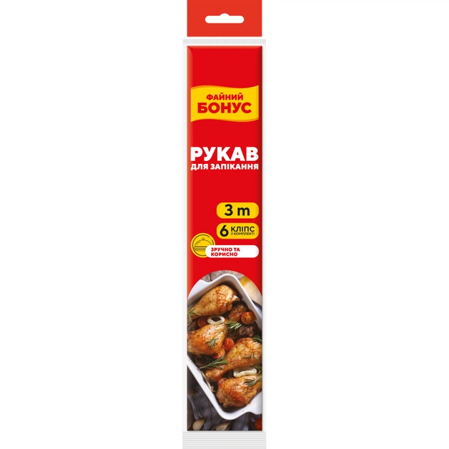 Рукав для запікання продуктів БОНУС зберігає цінні вітаміни і мікроелементи в приготованих стравах. Можна запікати без додавання жирів, страва готується у власному соку