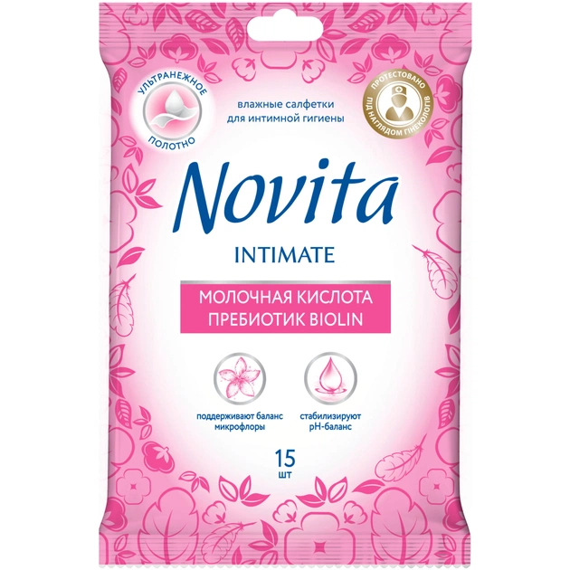 Серветки для інтимної гігієни Novita Intimate пребіотик Biolin 15 шт. (4823071616262)