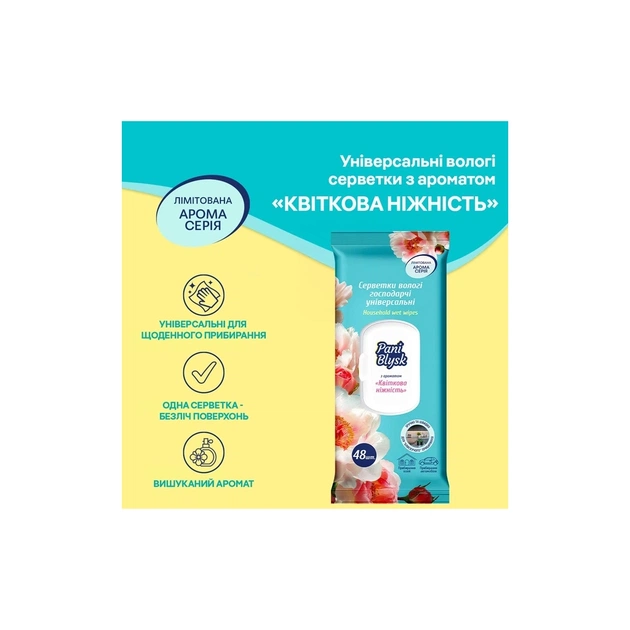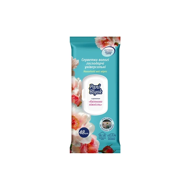 Серветки для прибирання Pani Blysk Вологі універсальні Квіткова ніжність 48 шт. (4823071670943)