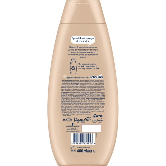 Шампунь Schauma Відновлення та Догляд з екстрактом кокосу 400 мл (3838824138923)