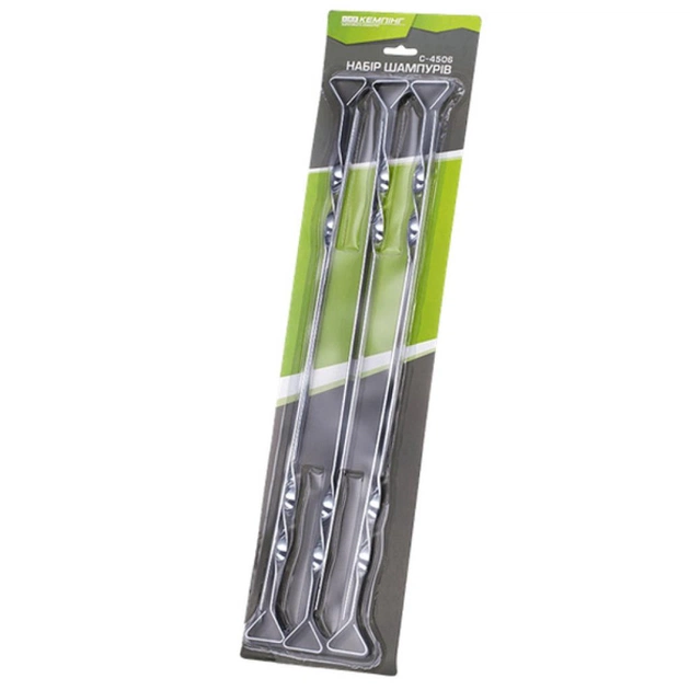 Набір шампурів Кемпінг С-6006 (4820152616166) - для смачних шашликів і гарного настрою! Шампури "Кемпінг" - це високоякісна сталь, яка гарантує їх довговічність.Шампури зручні у використанні. оскільки мають ручки ергономічної форми і конструкцію з ребрами жорсткості. Шампури добре тримаються на мангалі. А готувати з ними легко і приємно!