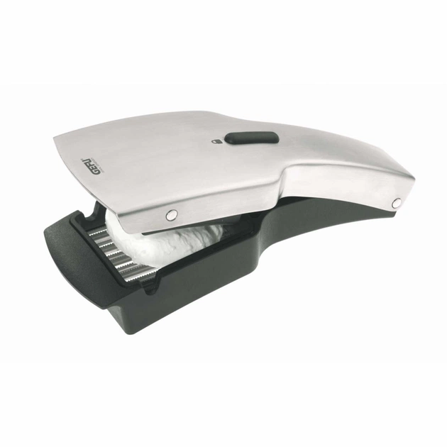 Слайсер Tari призначений для нарізання продуктів рівними пластинами по 5 мм. 10 лез із японської сталі перетворюють процес нарізання на дитячу гру. Спеціальний замок дає змогу економити місце, коли прилад не використовується.