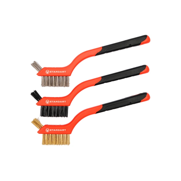 Цей універсальний набір ручних щіток ідеально підходить для різних завдань очищення та підготовки поверхонь. Він включає три щітки з різними типами щетини, що забезпечує максимальну гнучкість у роботі: