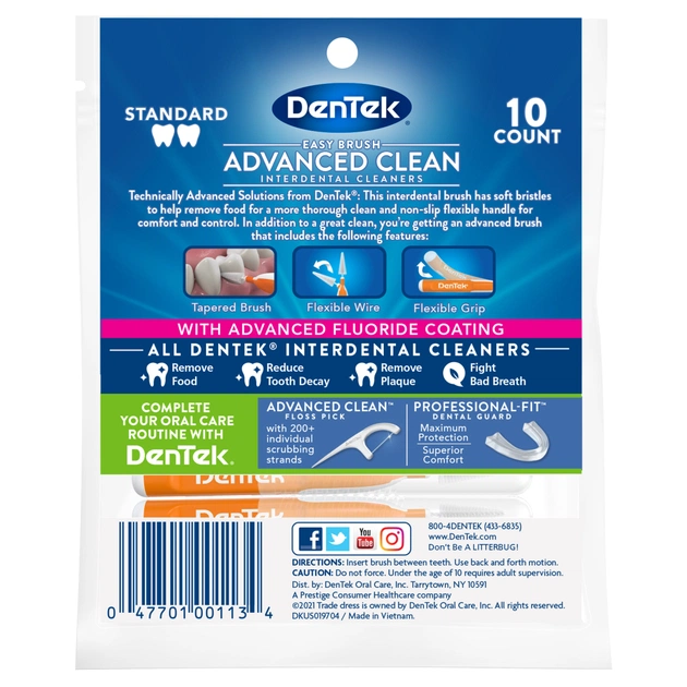 DenTek® Зручне очищення Міжзубні щітки для стандартних проміжків забезпечують легке очищення самих важкодоступних ділянок в ротовій порожнині.