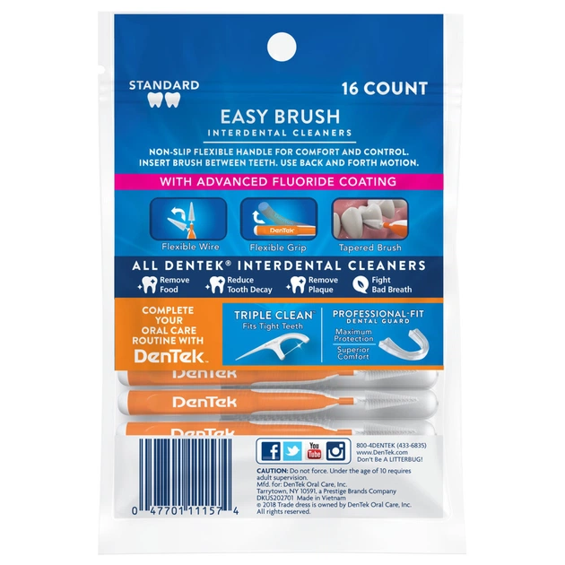 DenTek® Зручне очищення Міжзубні щітки для стандартних проміжків забезпечують легке очищення самих важкодоступних ділянок в ротовій порожнині.