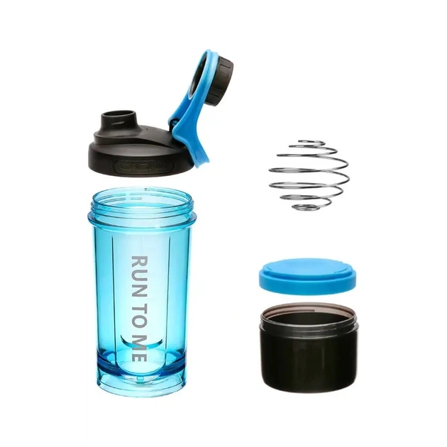 - Додатковий контейнер що кріпиться в дно шейкера дозволяє взяти порцію протеїну з собою.