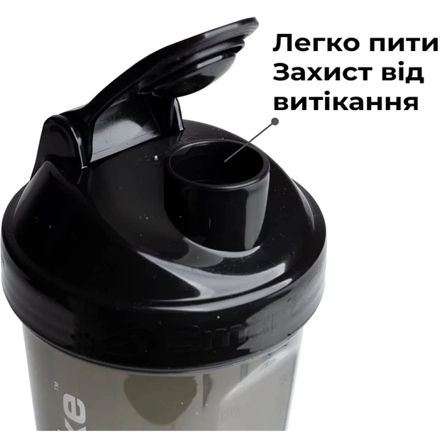 Оригінальний шейкер Smartshake розроблений для використання у тренажерному залі та у повсякденному житті. Він оснащений карабіном для ключа від гардеробної шафки або для пристібання клубної картки. Стильний та ергономічний шейкер виготовлено з врахуванням зручності, безпеки та екологічності. Сучасний дизайн гарантує максимально комфортне тримання під час приготування напою, пиття та носіння.