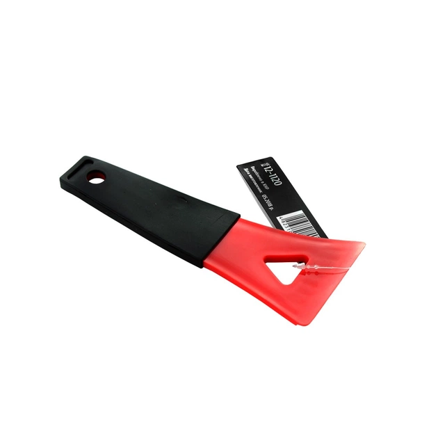 Спеціальний скошений наконечник дозволяє піддягати полій на склі і акуратно її видаляти, не завдаючи скляній поверхні пошкоджень у вигляді подряпин. Особливо компактні розміри дозволяють зберігати скребок в бардачку, кишенях карт дверей або в іншому зручному для автовласника місці для використання в момент необхідності.