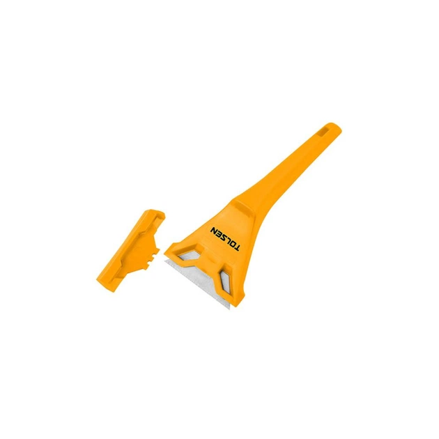 Пластиковий скребок Tolsen призначений для ефективного очищення різних поверхонь від бруду, фарби, клею та інших матеріалів. Його компактний розмір 175 х 70 мм дозволяє зручно працювати навіть у важкодоступних місцях. Лезо виготовлено з високоякісної сталі SK5, що забезпечує його міцність, гостроту та довговічність. Трапецієподібна форма леза забезпечує точність та контроль при використанні. Ергономічний пластиковий корпус гарантує комфортне утримання скребка під час роботи.