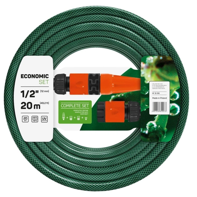 Шланг для поливу Cellfast набір ECONOMIC, 1/2", 20м, 3 шари, зрошувач, комплект для підключення (10-100)