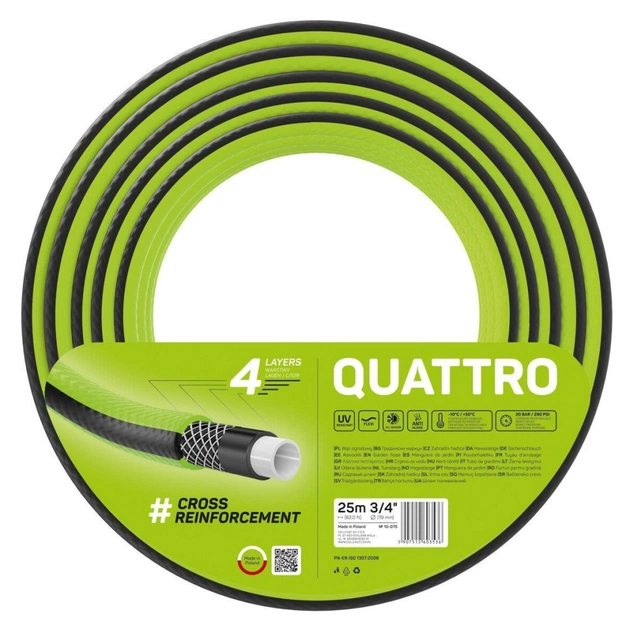 Шланг для поливу Cellfast QUATTRO, 3/4', 25м, 4 шари, до 20 Бар, -10…+50°C (10-075)