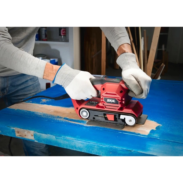 Шліфувальна машина Skil 7615 AB (SR1E7615AB) створена для тих, хто цінує якість і прагне належно обробляти різноманітні матеріали з максимальною ефективністю. Цей інструмент неодмінно знайде своє місце у арсеналі кожного професіонала, завдяки потужному двигуну з показниками в 710 Вт та вражаючій швидкості стрічки 330 м/хв. Завдяки такій продуктивності, ви з легкістю впораєтеся з попереднім шліфуванням дерев'яних, металевих або пластикових поверхонь, готуючи їх до подальшого фарбування чи обробки.