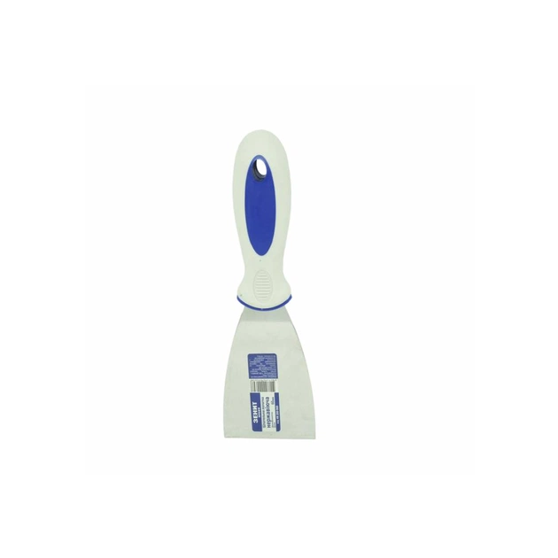 Шпательна лопатка складається з двох комплектуючих – леза і ручки. Лезо шириною 60 мм і товщиною 0.5-1.0 мм виготовлено з нержавіючої сталі, що забезпечує надійність і тривалий термін служби робочого полотна. Ергономічна двокомпонентна ручка з отвором для підвішування забезпечує зручність експлуатації та зберігання інструменту.