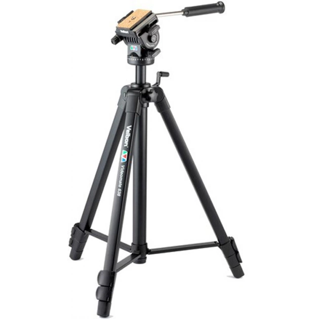 Алюмінієвий штатив VELBON Videomate 638/F для відеозйомок. Висота 171 сантиметрів, забезпечує зручну зйомку. Дана модель штатива розрахована на використання відеокамер вагою до 4 кг, що дозволяє використовувати професійну техніку. VELBON Videomate 638/F підійде як для любителів, так і для професіоналів. Штатив Velbon Videomate 638/F обладнаний замками-кліпсами, гідростатичною композитною 2D-відеоголовкою Velbon PH-368 Vel-Flo 9 (майданчик QB-6RL) на підйомній рейковій центральній колоні.