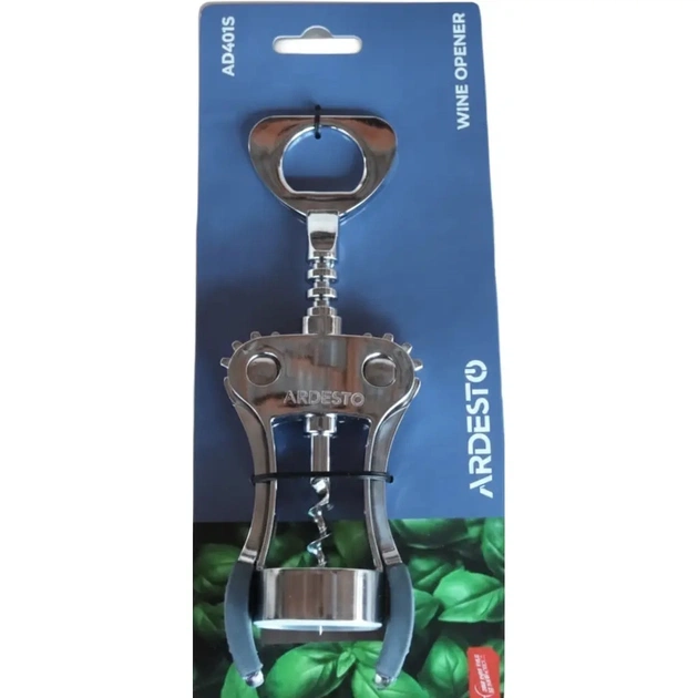 Штопор ARDESTO серії Gemini є надійним і стильним інструментом для відкорковування пляшок. Виріб виготовлено з якісного цинкового сплаву та термопластичної гуми, що гарантує довговічність та стійкість до корозії. Завдяки розміру (19 см) забезпечує зручність у використанні. Виріб не рекомендовано мити в посудомийній машині.