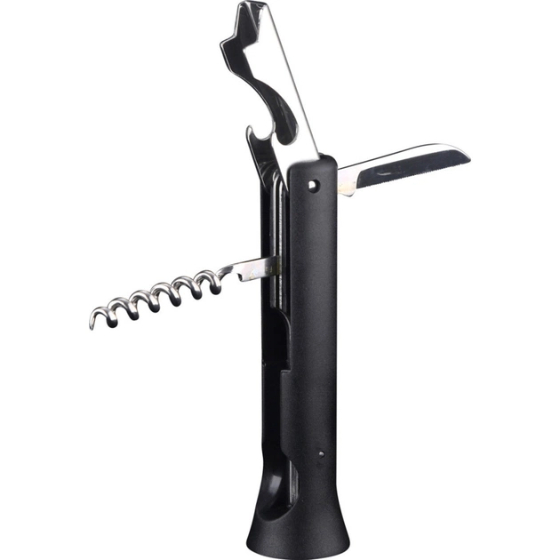 Має гвинтову спіраль і невеликий ніж для розкриття капсул. Складний. Пластикова ручка зручно розташовується в руці, не вислизає.